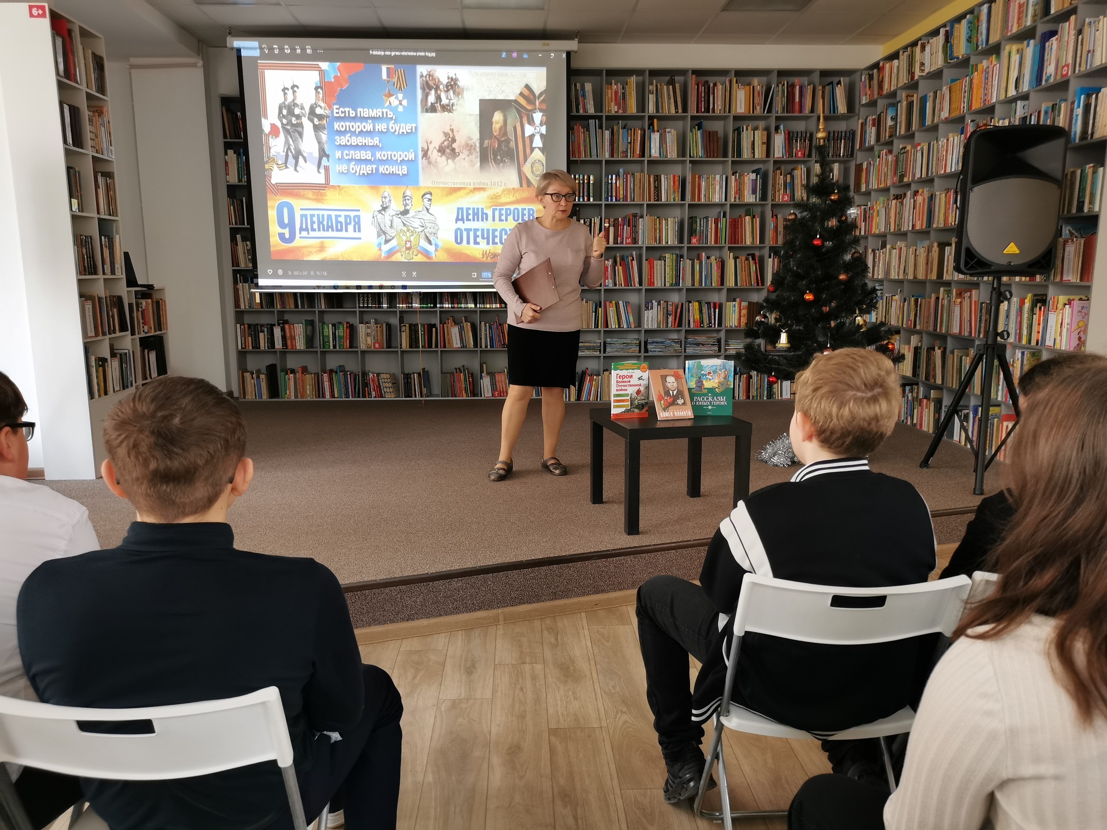 В этот день в библиотеке собрались ученики из школы №7. Собравшиеся школьники познакомились с историческим значением этого памятного дня для России.