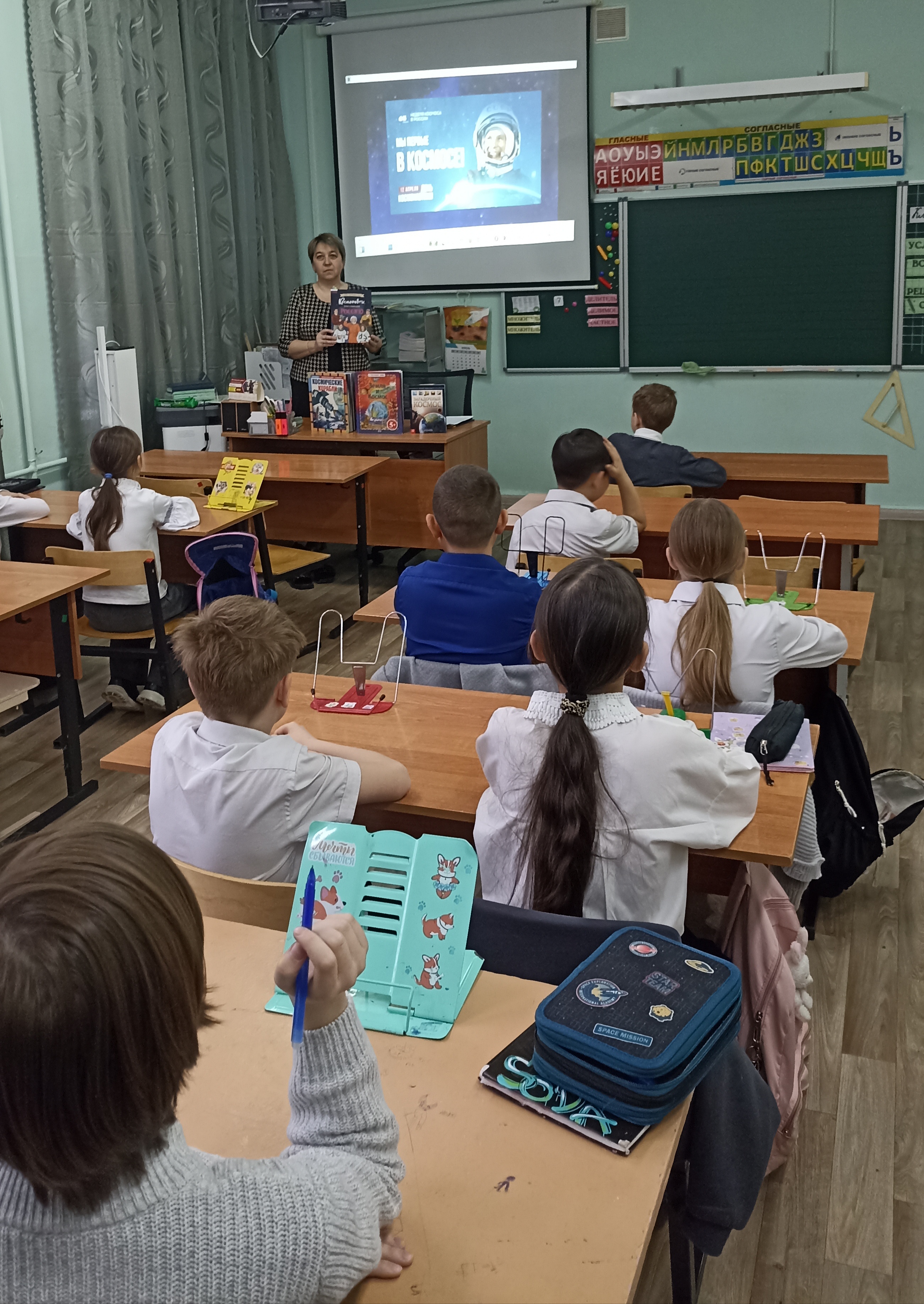 О космонавтах, прославивших Россию, мы беседовали с учащимися школы № 12. Ребята познакомились с биографиями людей, известных всему миру. Космонавты, эти отважные люди, когда-то тоже были детьми, одолевали за партой науки, любили читать и мечтать. Юрий Гагарин, Валентина Терешкова, Алексей Леонов, Валерий Поляков, Сергей Крикалёв принесли славу нашей стране, покоряя небесные просторы.