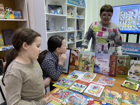 Завершилось мероприятие знакомством с литературой о птицах на выставке «Певцы русского леса». Ребята рассматривали книги и энциклопедии, посвященные жизни пернатых, обитающих в России.