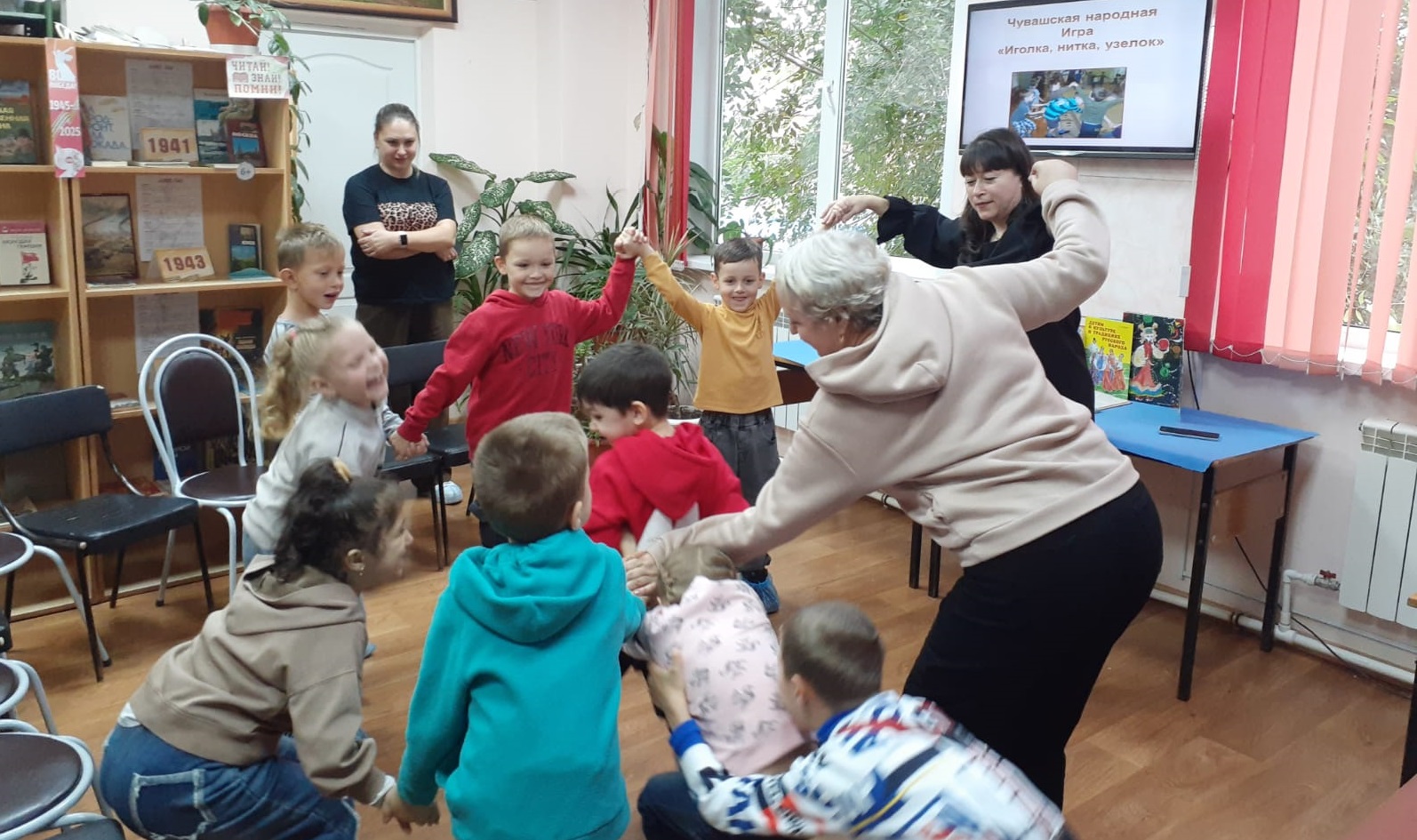 Читали, а потом с интересом обсуждали, татарскую сказку «Про диких коней и наездников», мордовскую сказку «Как собака себе друга искала». Весело, под чувашскую и башкирскую музыку, играли в национальные игры: «Нитка, иголка, узелок», «Юрта», «Колечко, колечко».