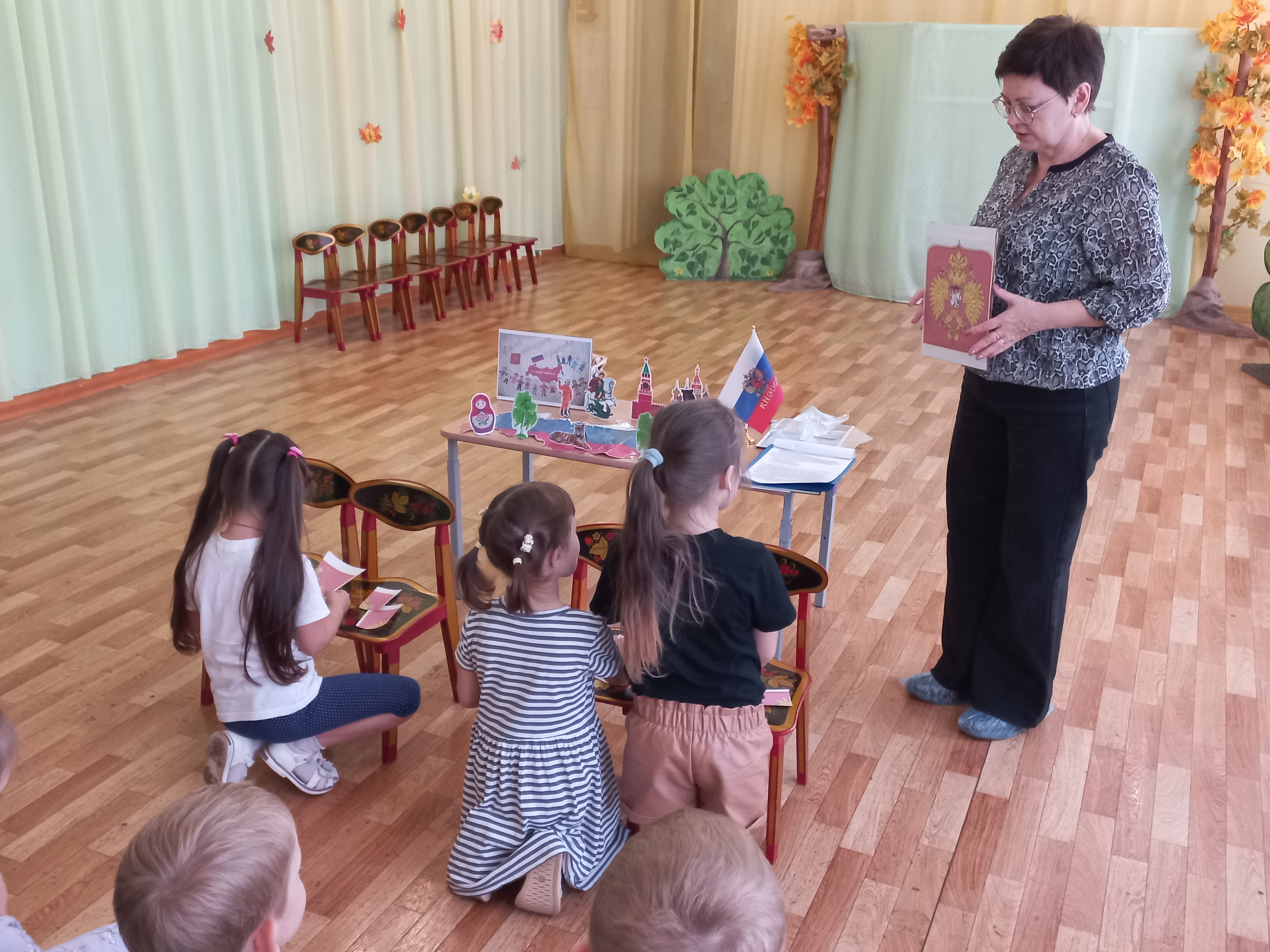 Единство – это когда все люди вместе. Об этом мы говорили с ребятами из детского сада «Теремок». А ещё мы вспомнили символы нашего государства: флаг, герб и гимн.